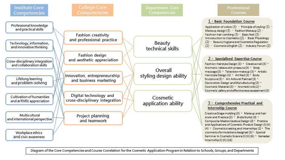 (英文)系核心能力對應各指標與課程關聯圖格式(3組課程)